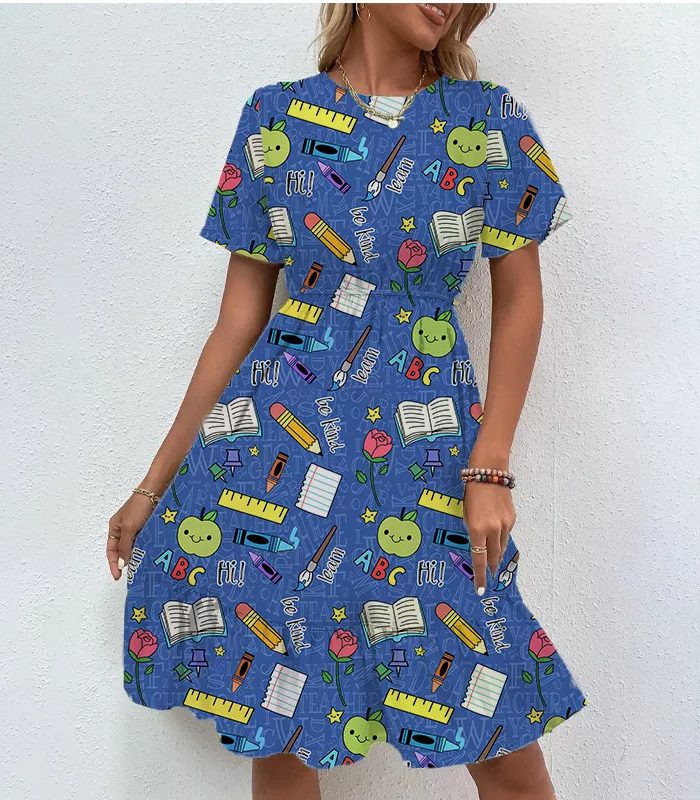 Hi Be Kind Be Warm Learn Teacher Printed One Piece Dress