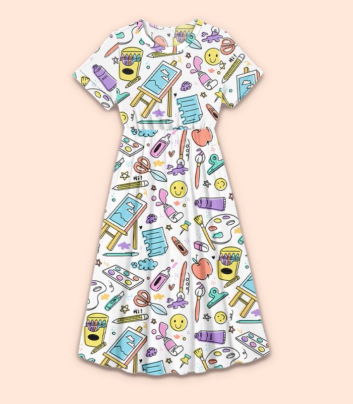 Freely Draw The Picture In Your Mind Teacher Printed One Piece Dress