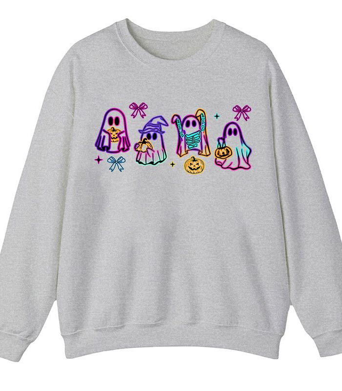 Colorful Neon Ghost Pumpkin Teacher Sweatshirt
