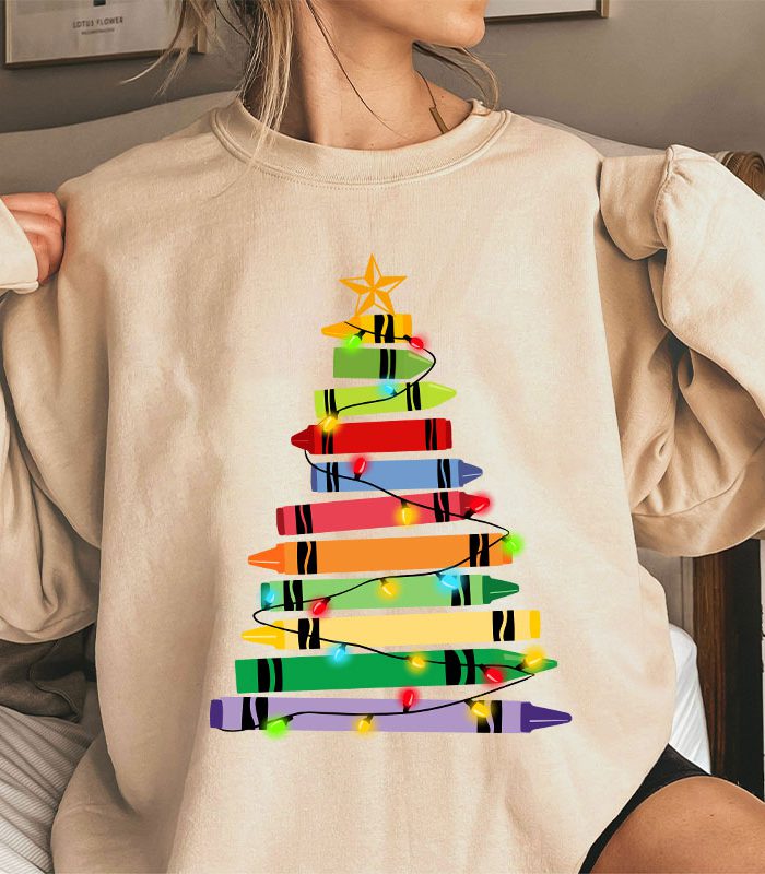 Be the first to review “Crayons Tree Colored Ligths Teacher Sweatshirt” Cancel reply