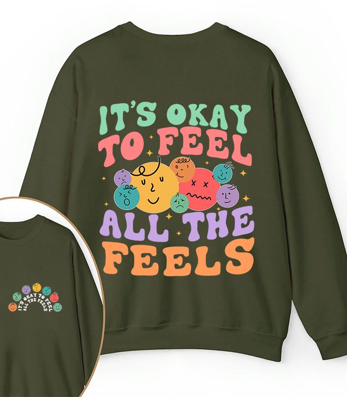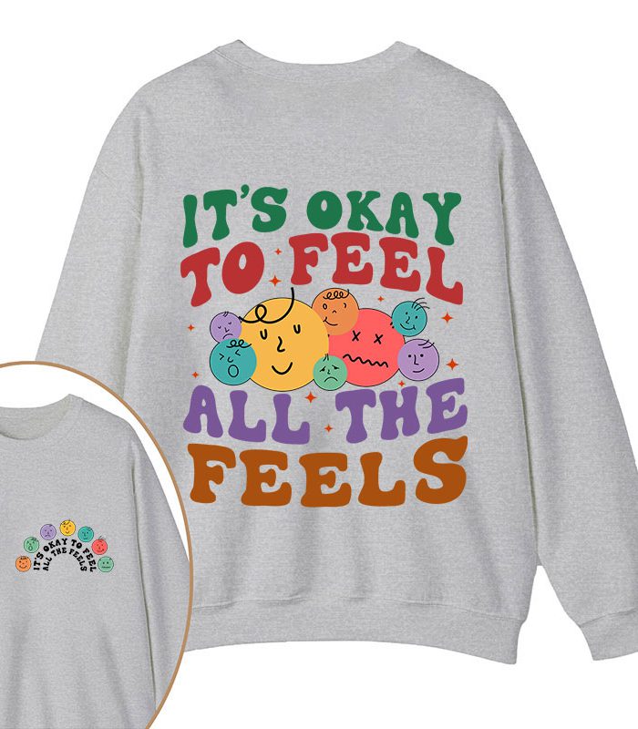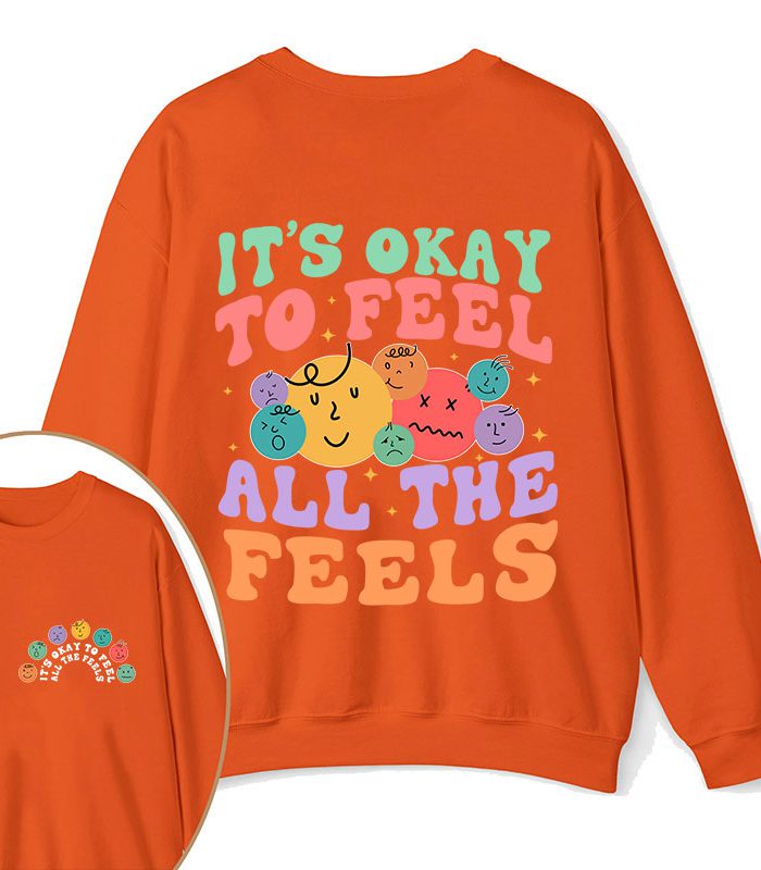 Be the first to review “It’s Ok To Feel All The Feels Teacher Two Sided Sweatshirt” Cancel reply