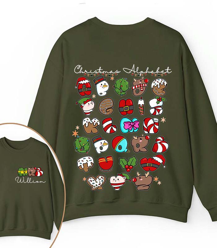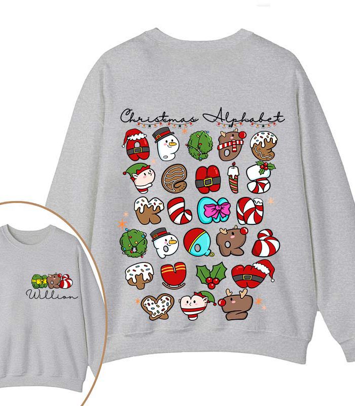 Personalized Christmas Alphabet Teacher Two Sided Sweatshirt