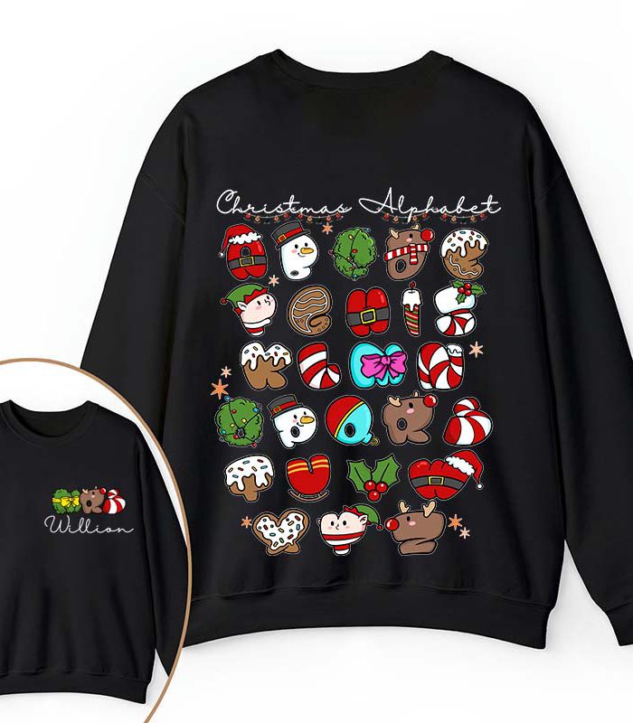 Be the first to review “Personalized Christmas Alphabet Teacher Two Sided Sweatshirt” Cancel reply