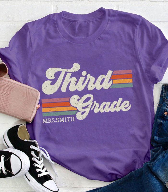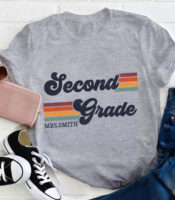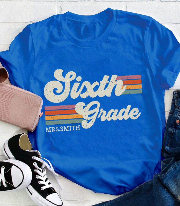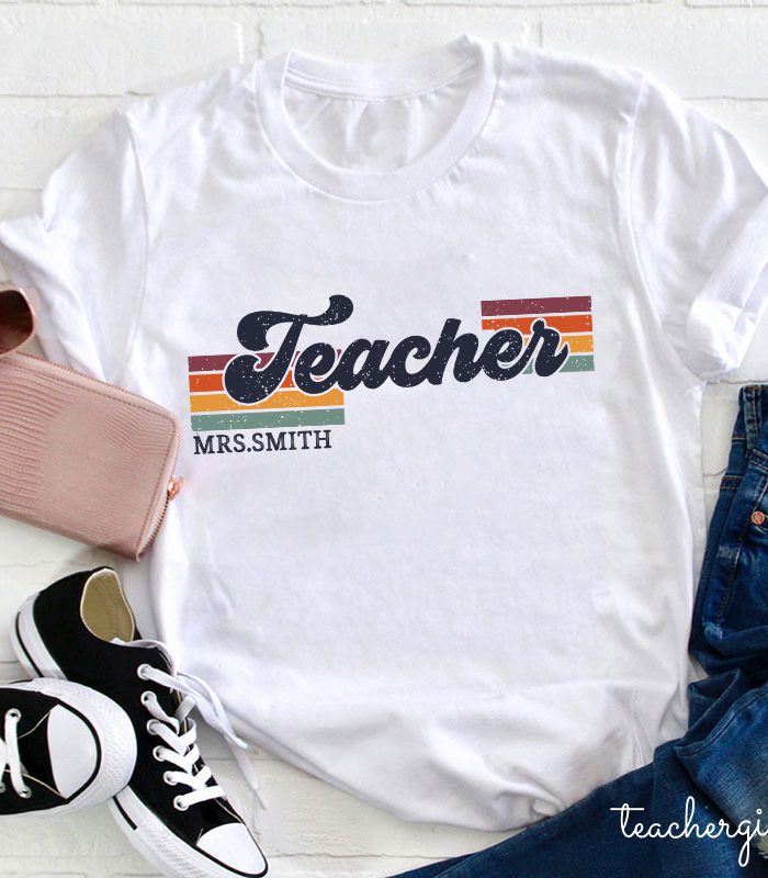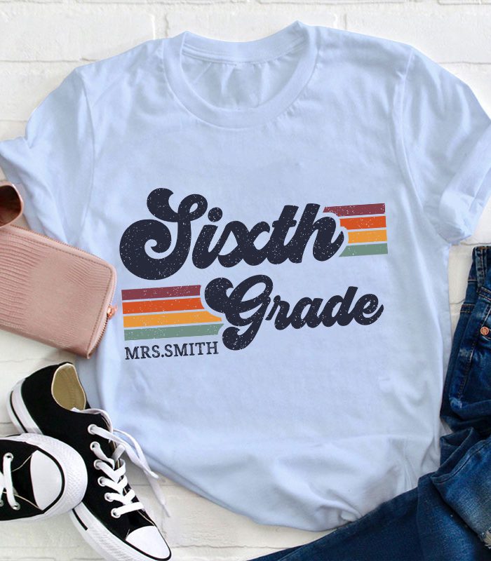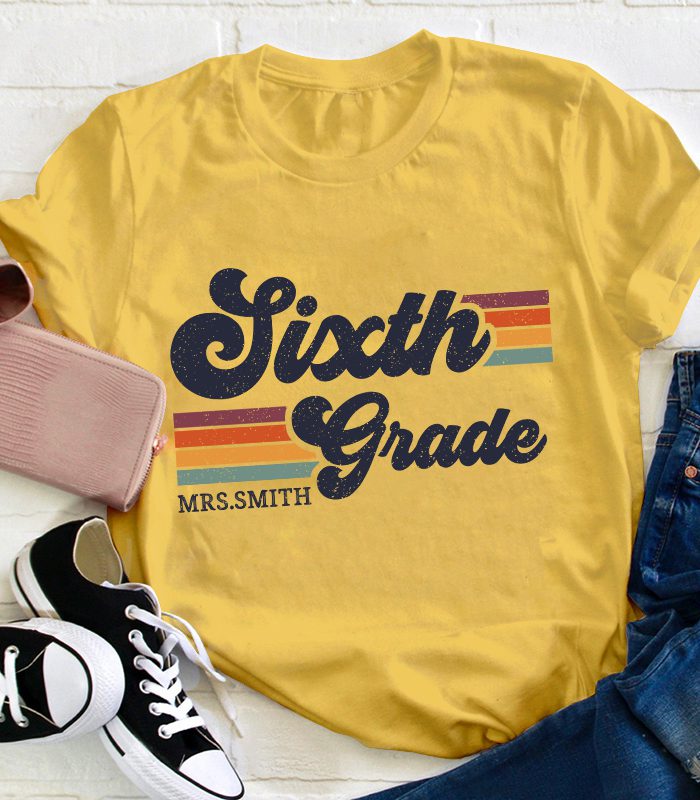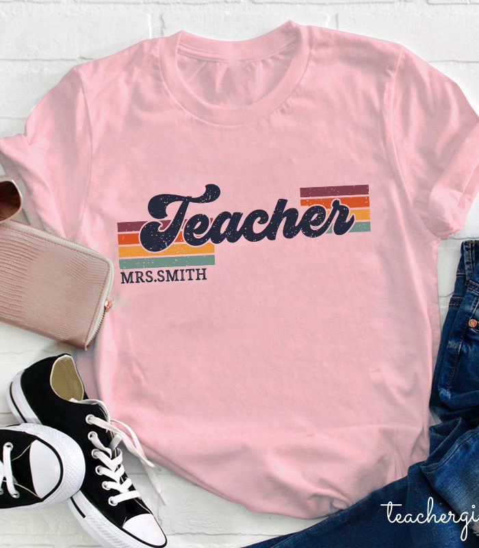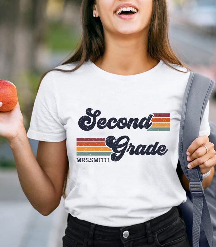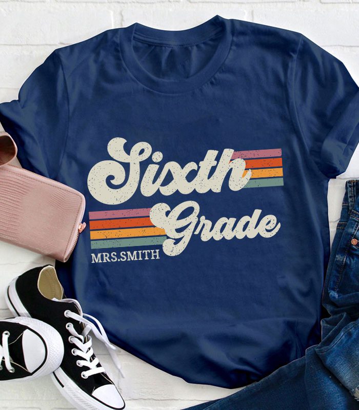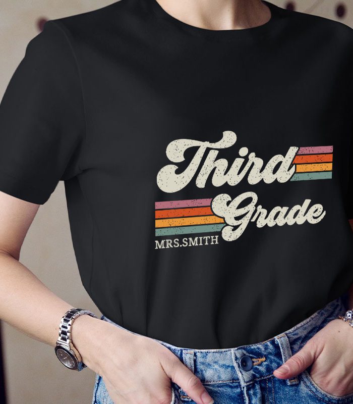 Be the first to review “Personalized Grade And Name Retro Horizontal Stripes Teacher T-Shirt” Cancel reply