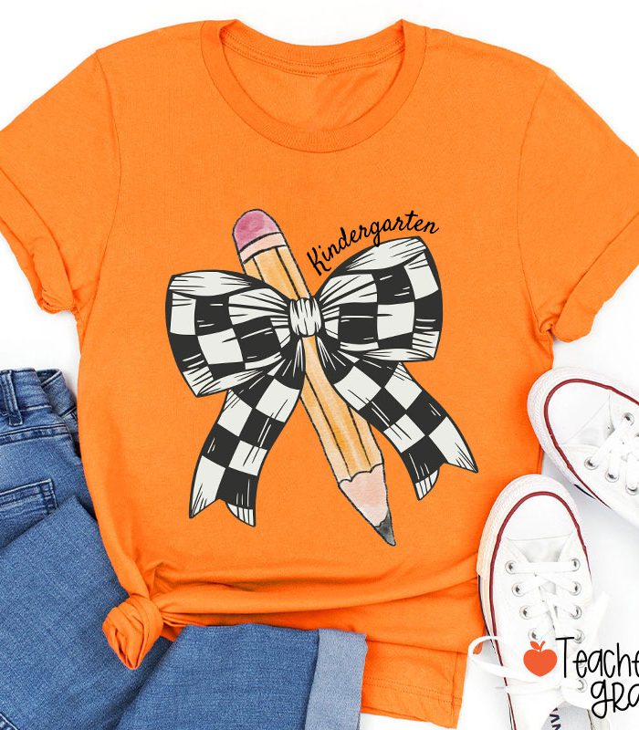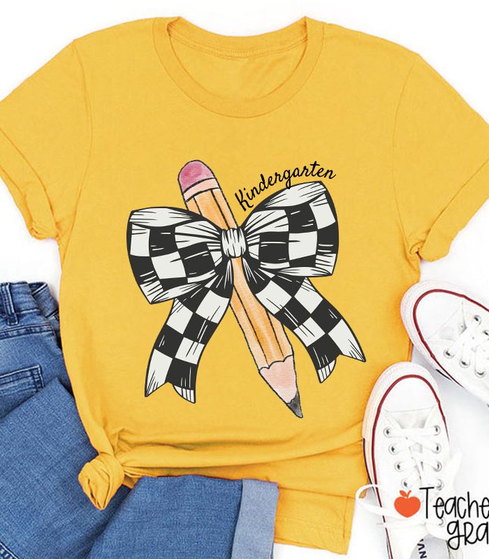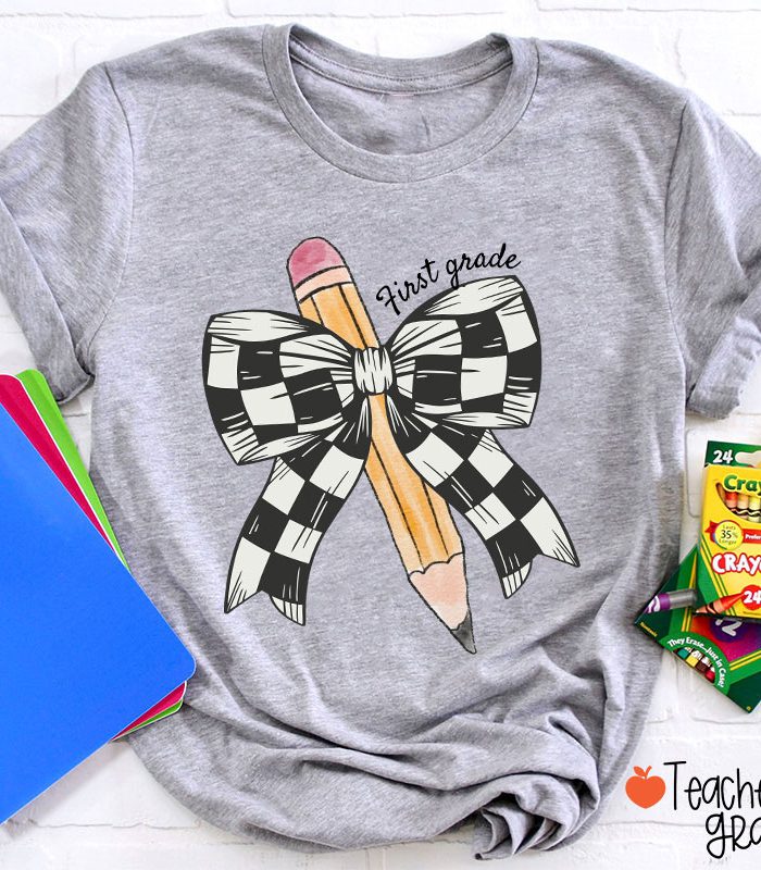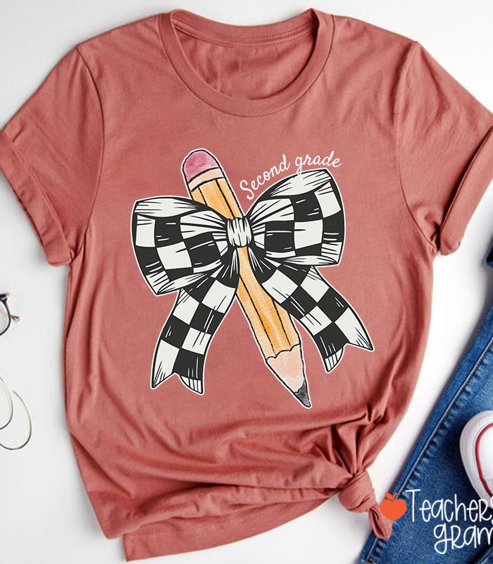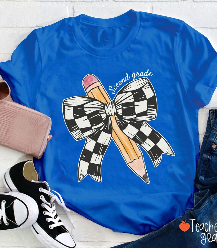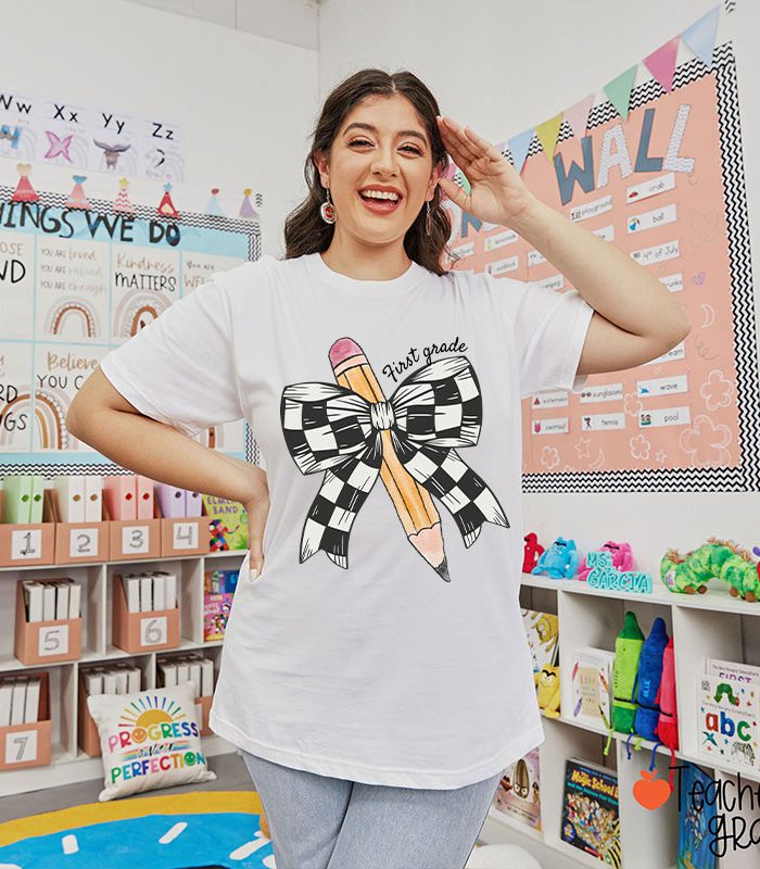Be the first to review “Personalized Grade Checkered Bow Pencil Teacher T-Shirt” Cancel reply