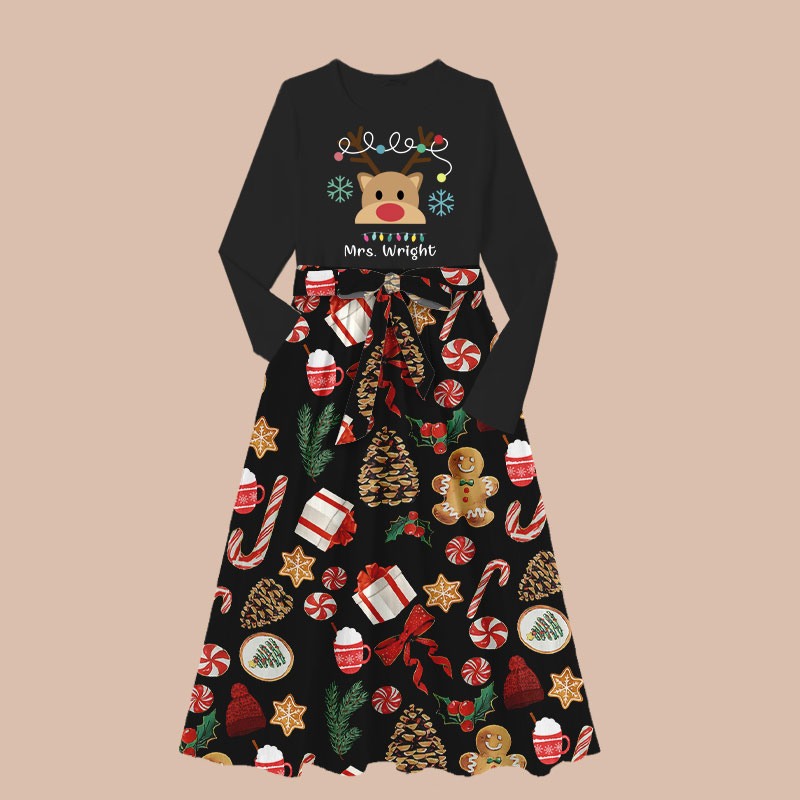 Personalized Merry Christmas Teacher Long-Sleeved One Piece Dress
