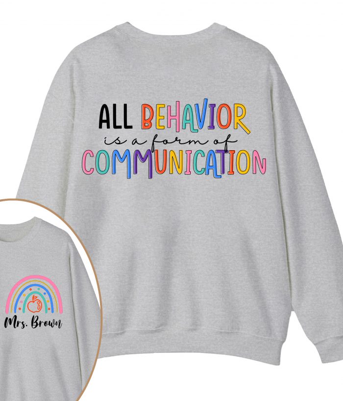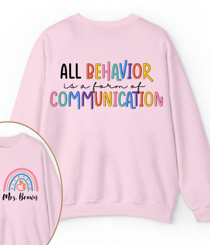 Be the first to review “Personalized Name All Behavior Is A Form Of Communication Teacher Two Sided Sweatshirt” Cancel reply