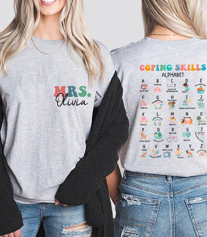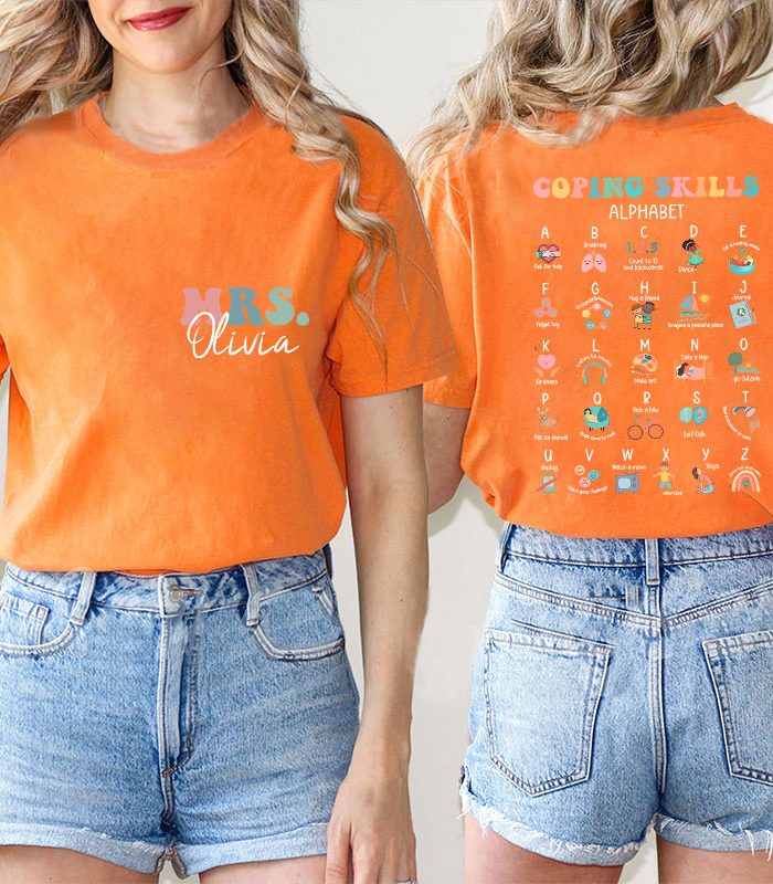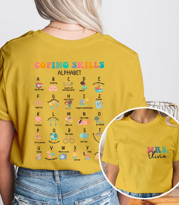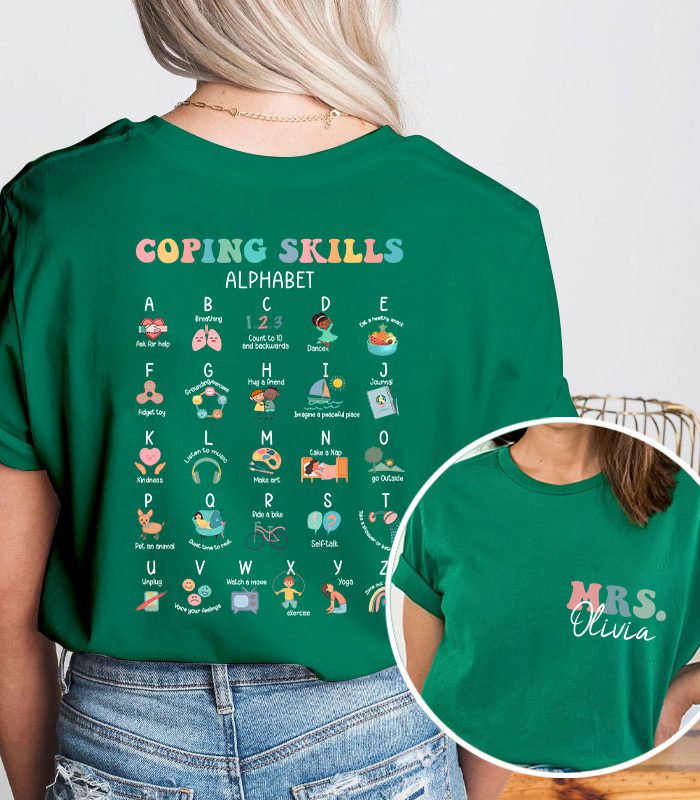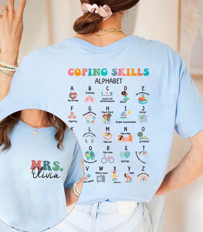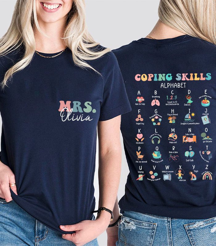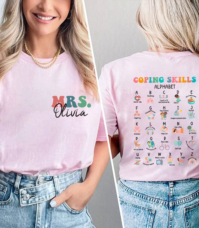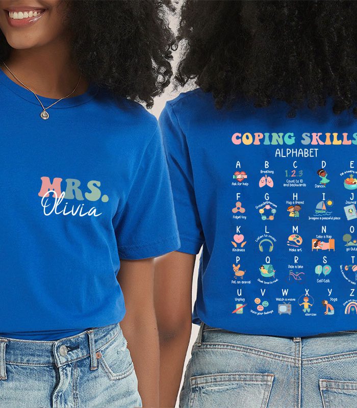 Be the first to review “Personalized Name Coping Skills Alphabet Teacher Two Sided T-Shirt” Cancel reply