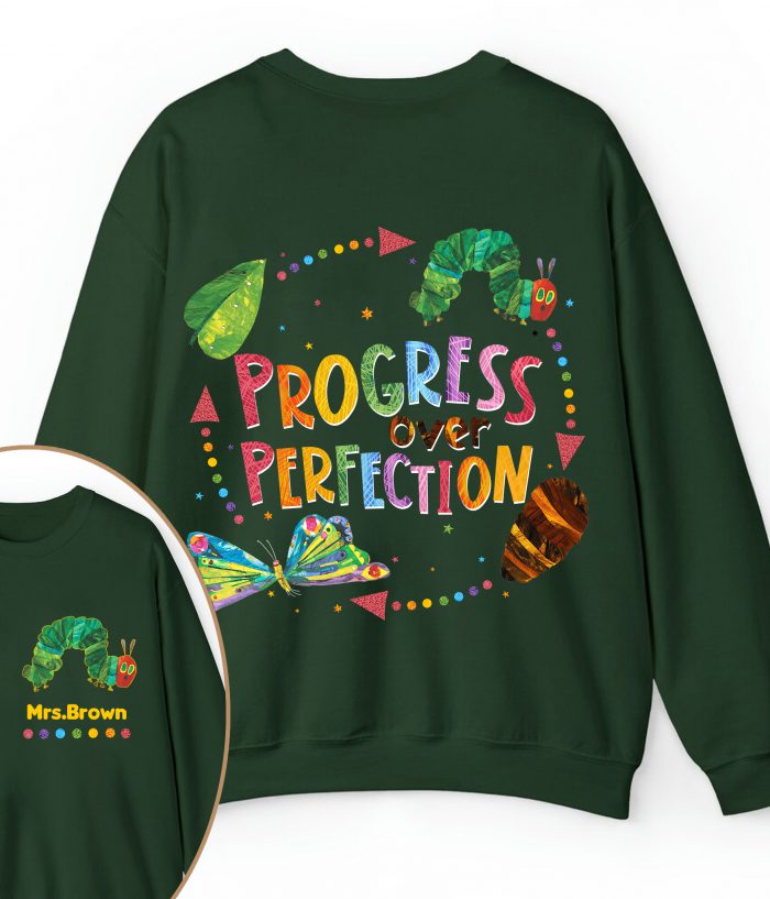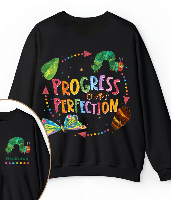 Be the first to review “Personalized Name Progress Over Perfection Teacher Two Sided Sweatshirt” Cancel reply