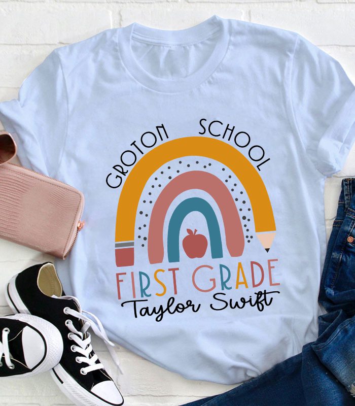 Personalized Name Rainbow Apple Teacher T-Shirt