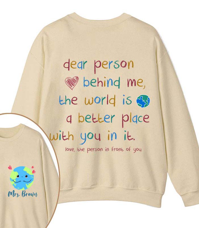 Be the first to review “Personalized Name The World Is A Better Place With You In It Teacher Two Sided Sweatshirt” Cancel reply