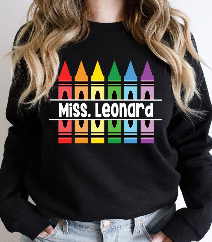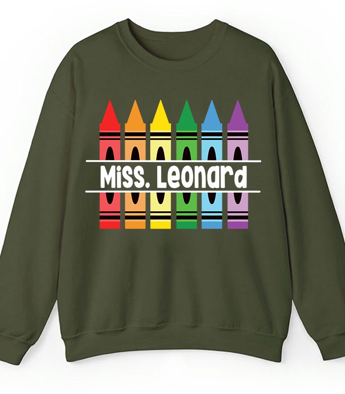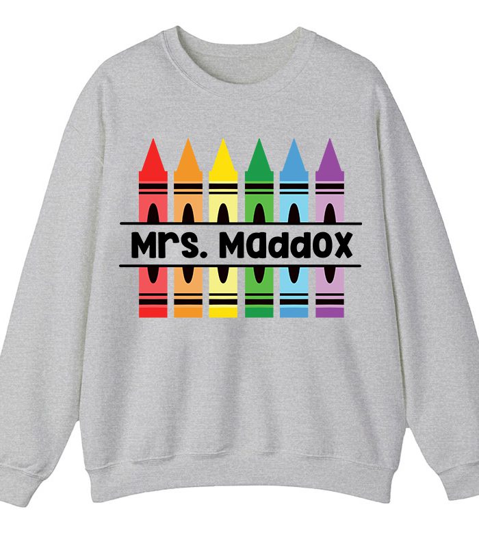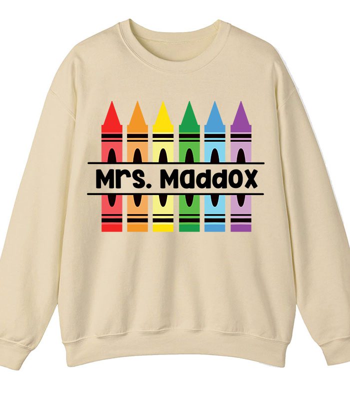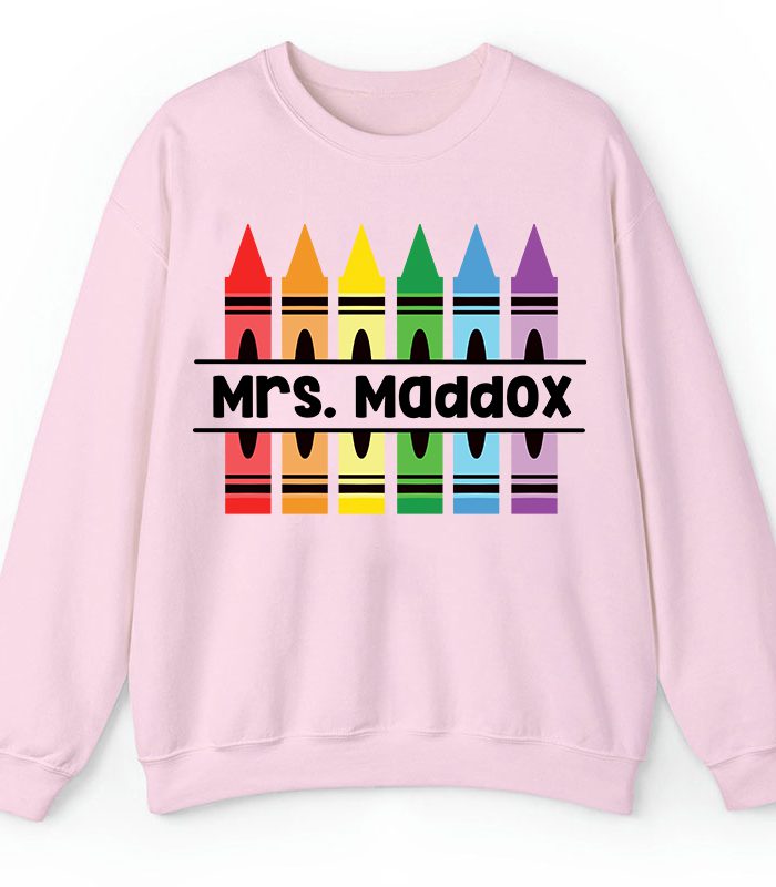 Personalized Pencil Crayon Teacher Name Teacher Sweatshirt