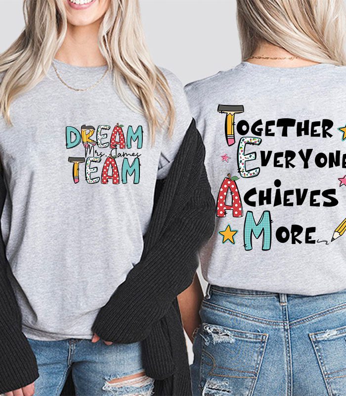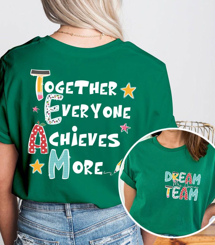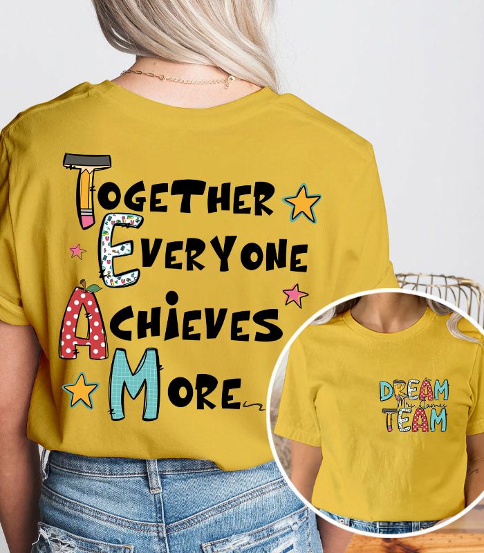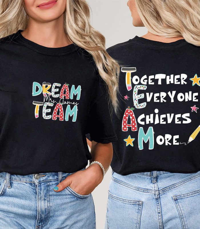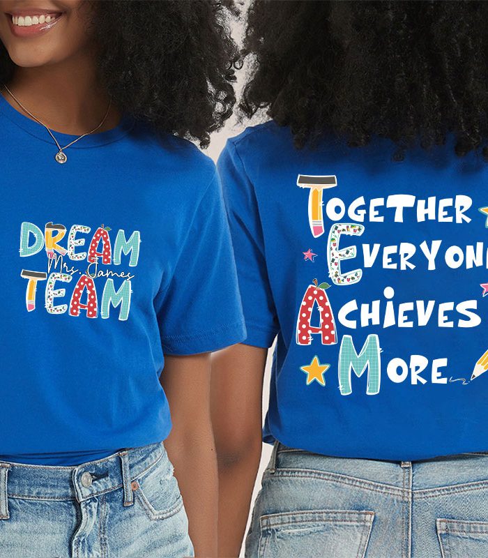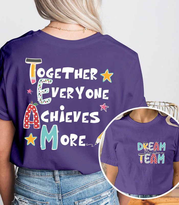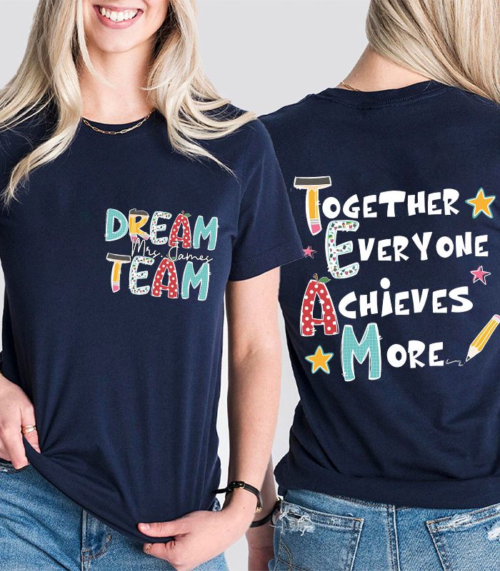 Be the first to review “Personalized Teacher’s Name Together Everyone Achieves More Teacher Two Sided T-Shirt” Cancel reply
