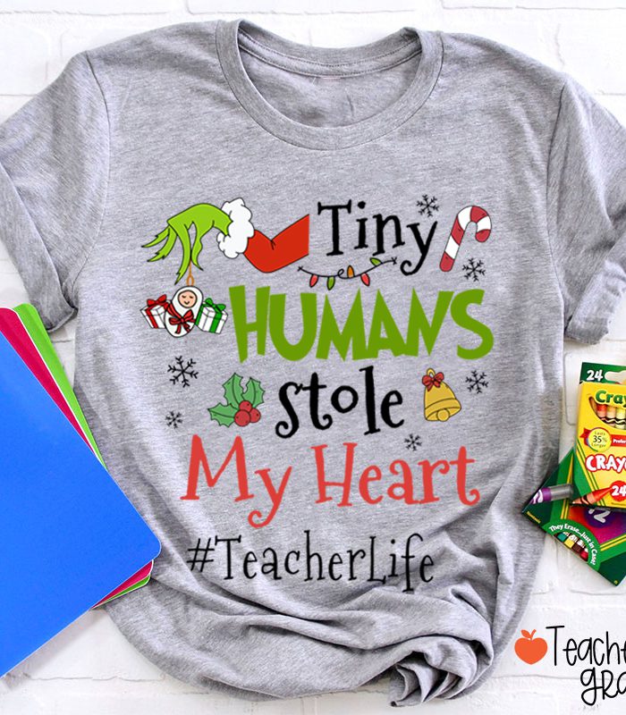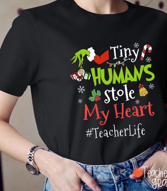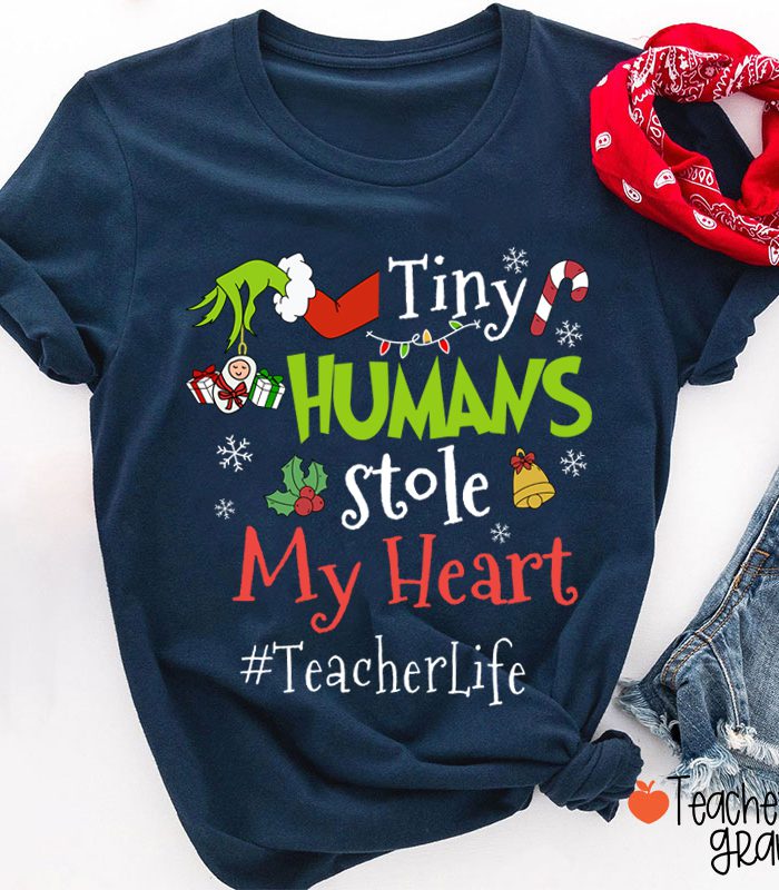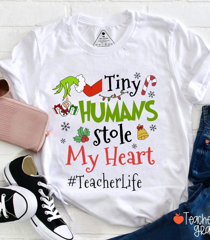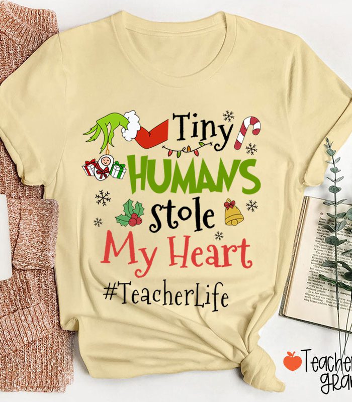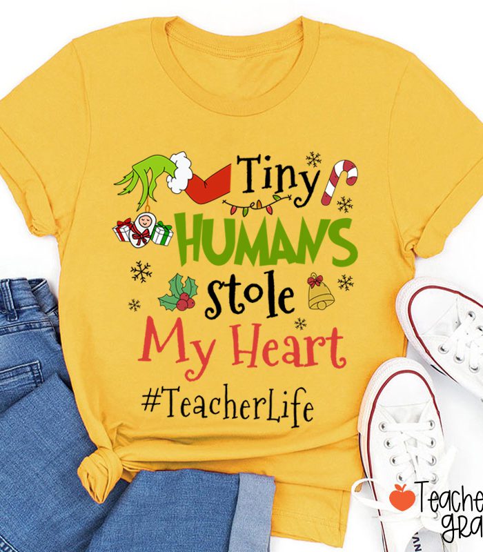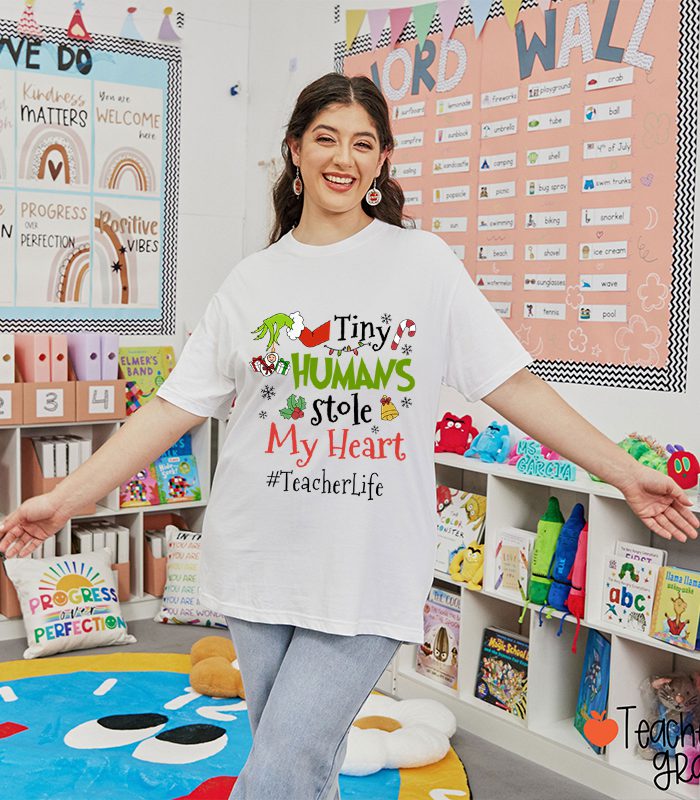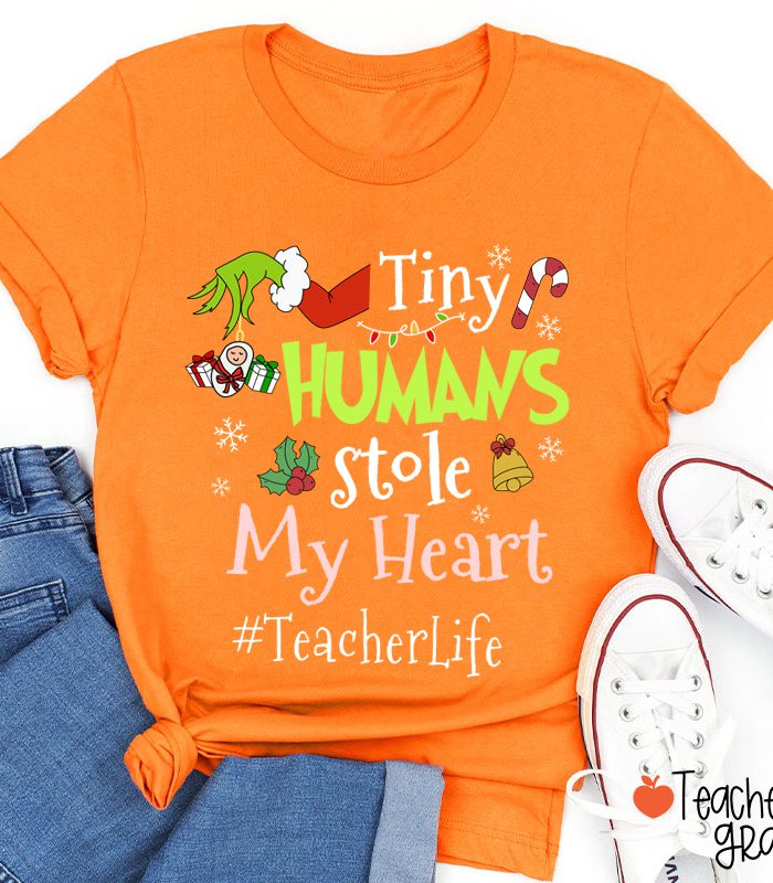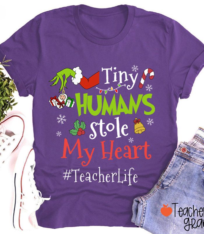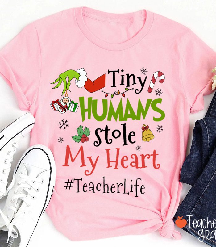 Personalized Tiny Humans Stole My Heart Teacher T-Shirt